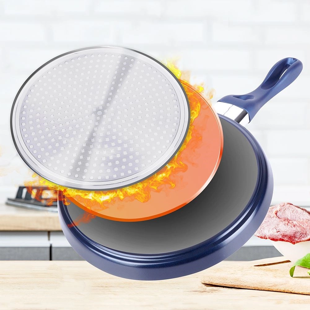 Denne stilfulde pandekagepande er designet til perfekte, tynde pandekager, små pandekager og omeletter. Den diamantforstærkede, keramiske base med diamantpartikler leder varme effektivt og sikrer jævn stegning uden at brænde på, så du kun behøver en smule olie. Den massive støbte aluminium opbygger varme effektivt og holder en stabil temperatur over hele overfladen.