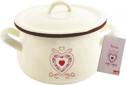 Stilfuld emaljeret gryde i retrodesign, ideel til daglig madlavning og simreretter. Takket være kvalitetsstål med emaljeret overflade er den holdbar, hygiejnisk og velegnet til allergikere. Inkluderer et solidt låg og praktiske håndtag for sikker håndtering.