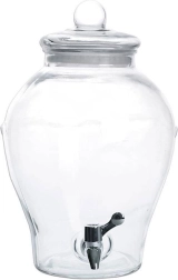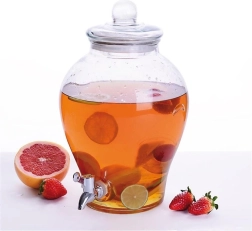 Elegant glasdispenser til drikke med en kapacitet på 6,5 liter giver praktisk og hygiejnisk servering af vand, hjemmelavet lemonade, iste eller punch. Det gennemsigtige, tykvægget glas er fødevaresikkert og neutralt i smag, og metalhanen muliggør nem tapning uden spild.