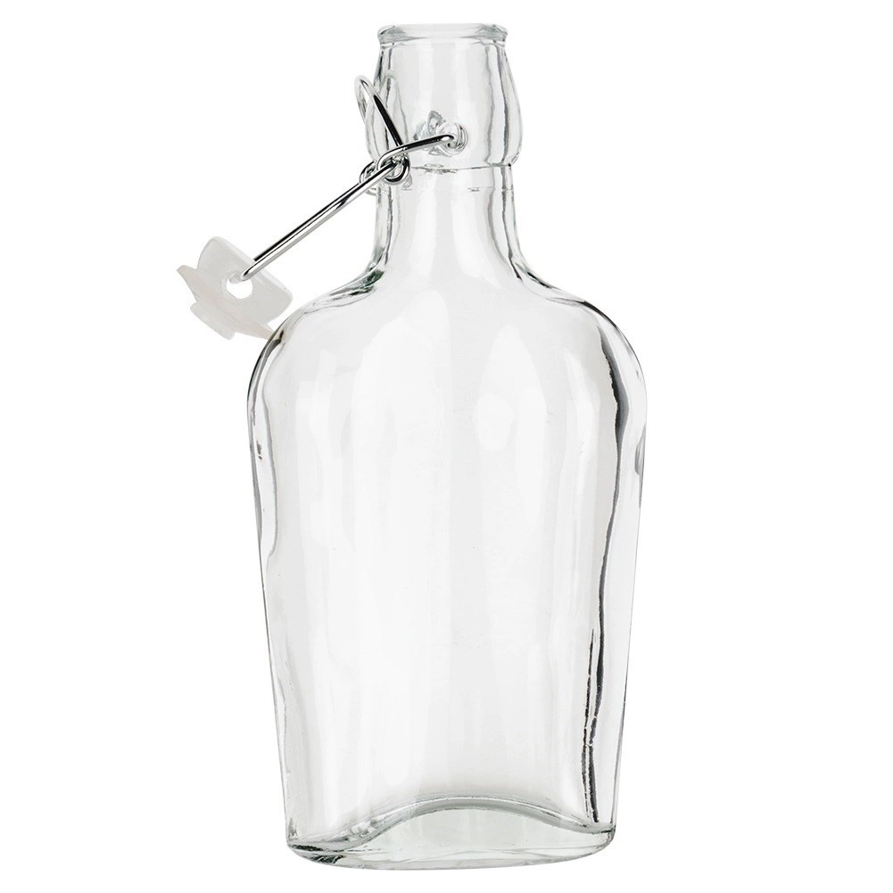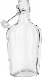Praktisk glasflaske med en kapacitet på 180 ml og patentlukning med clips til sikker og stilfuld opbevaring af drikkevarer. Ideel til hjemmelavede vine, likører, sirupper og øl. Robust, kraftigt glas fremhæver indholdet smukt, og den tætsluttende clips forhindrer lækage og forlænger friskheden. Flaskens mål er 9 × 4 × 20 cm.