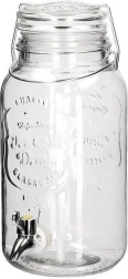 Stilfuld glasdispenser med en kapacitet på 4 l, ideel til servering af limonade, vand, juice eller punch. Den har en praktisk hane, en bred påfyldningsåbning for nem rengøring, et lufttæt låg med pakning og klips mod insekter samt et dekorativt relief, der gør sig flot både til havefest og derhjemme.