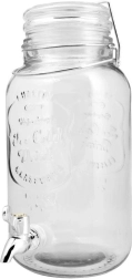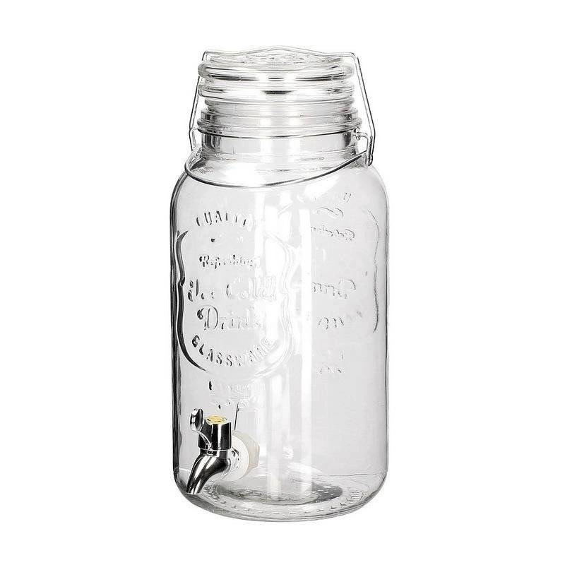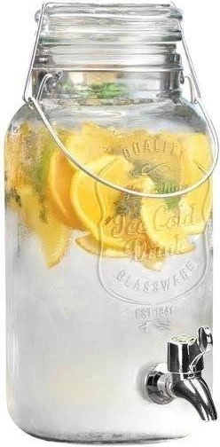 Låget af hærdet glas er udstyret med pakning og metalclips, så drikken forbliver beskyttet mod hvepse og andet småkryb. Dispenseren er fremstillet af kvalitets, kraftigt glas med præget dekoration, som giver et stilfuldt udtryk til enhver borddækning – derhjemme, i haven og i foodservice.