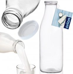 Glasflasken til mælk på 1 l er en elegant og praktisk beholder til daglig brug. Det gennemsigtige kvalitetsglas giver dig altid overblik over indholdet, mens det solide metallåg sikrer lukning uden spild og hjælper med at forlænge drikkenes friskhed.