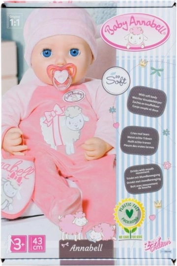 Den interaktive Baby Annabell dukke i størrelsen 43 cm giver børn en autentisk oplevelse af at passe en baby. Hun drikker vand af flasken, bevæger munden, bøvser efter at have drukket og reagerer realistisk med munden på sutten. Efter vuggen lukker hun øjnene og falder i søvn, kan græde med tårer og elsker både at blive vugget og kildet.