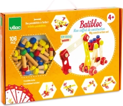 Dette kvalitetsbyggesæt i træ, VILAC Batibloc, er ideelt som det første konstruktionssæt til børn fra 3 år. Med farvede og naturlige dele med huller samt forbindelsesmateriale kan børn bygge køretøjer, fly og deres egne originale modeller, mens de udvikler tålmodighed og fingerfærdighed.