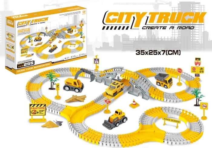Skab en dynamisk bane med arbejdskøretøjer og lad fantasien få frit spil. Sættet indeholder 255 elementer, der kan samles frit i forskellige former. De segmenterede banedele klikkes nemt sammen, så både børn og forældre kan bygge og bygge om hurtigt. Realistiske byggemaskiner giver legen autenticitet.