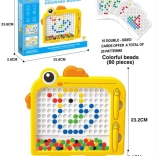 Sjov magnetisk tegnetavle formet som en kylling, der udvikler finmotorik, koncentration og børns kreativitet. Med den magnetiske pen og skabeloner skaber børn nemt forskellige mønstre og billeder. Sættet indeholder 20 skabeloner, en magnetisk pen og en tavle med praktiske mål til leg derhjemme og på farten.