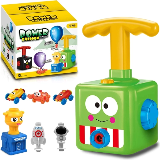 Opdag et enkelt og fængende spil, hvor en ballon driver underholdningen. Børn puster nemt ballonen op med pumpeapparatet, sætter den på bilbanen eller figuren og slipper den så løs fra den store frø-ballonstarter. Se, hvordan bilerne suser, figurerne hopper, og krabben sætter i gang – hver gang er forskellig, og børnene træner både koordination og tålmodighed.