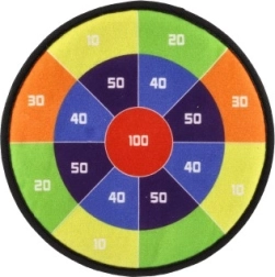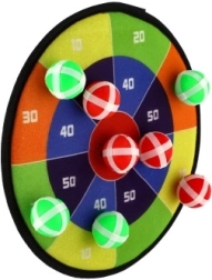 Spillet indeholder 8 bolde med velcro, som sikkert hæfter til målskiven, hvilket minimerer behovet for opsyn med sikkerheden. Målskiven er udstyret med et øje til nem ophængning i rummet.