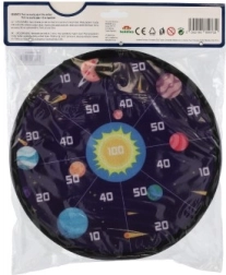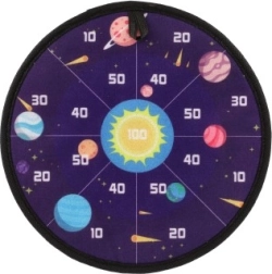 Den ene side af målskiven er designet med tiltrækkende farver og tal til traditionelt spil, mens den anden side bringer et rumtema med planetbilleder. Børnene har mulighed for at øve matematik ved at summere de point, der bliver tildelt ved individuelle kast.