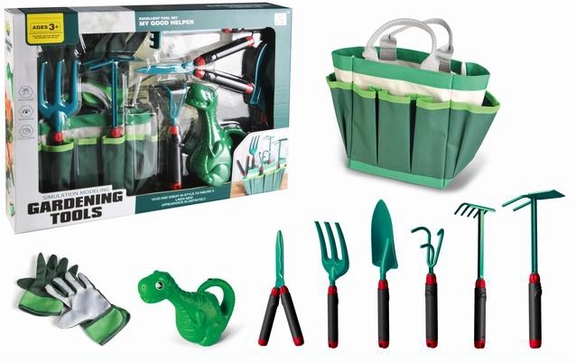 - Komplet udstyr: vandkande, saks, rive, skovl, hakke, lille kultivator, handsker