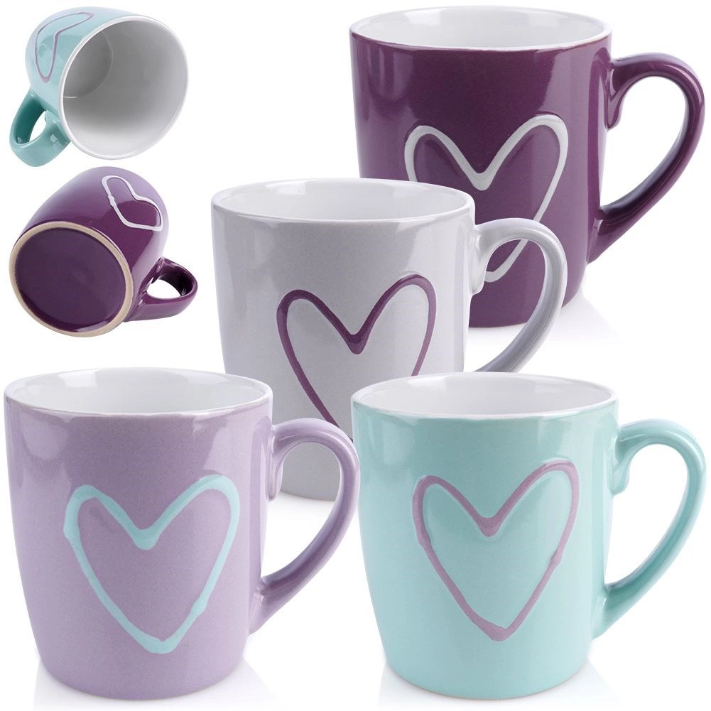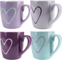 Forkæl dig selv med daglig glæde over din yndlingsdrik med et sæt på fire keramiske krus med et fint hjertemotiv. Hvert krus har en kapacitet på 350 ml og kommer i smukke pastel- og neutrale farver, der lyser op i køkkenet og ved servering.