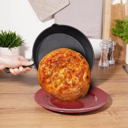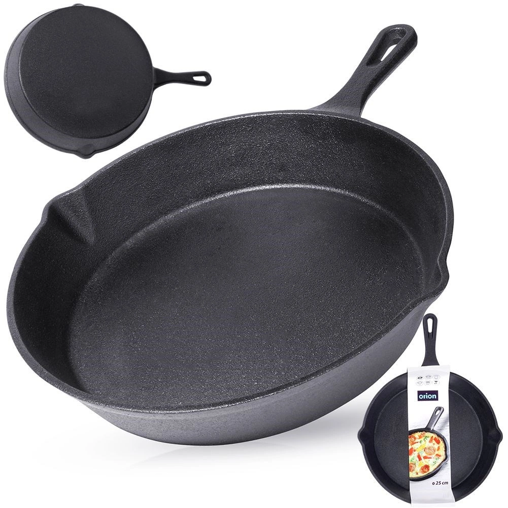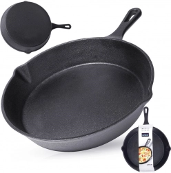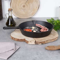 Den robuste støbejernspande med en diameter på 25 cm er ideel til tilberedning af kød, grøntsager, kartofler og bagværk. Den massive støbejernskrop varmes hurtigt og jævnt op og holder en stabil temperatur, så maden forbliver varm længere og giver perfekte resultater ved searing, stegning og bagning.