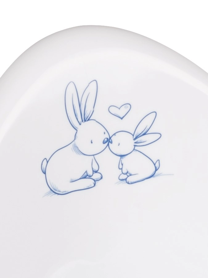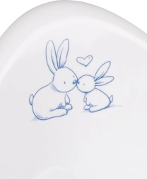 Den praktiske børnepotte Bunny i hvid farve imponerer med det søde kaninmotiv og den komfortable form. Den er let, kompakt, og takket være den høje ryglæn og det brede sæde giver den børn komfort under brug.