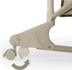 Hjul med låsefunktion gør det nemt at flytte rundt i hjemmet. Når de tages af, bliver vuggen på et øjeblik til en komfortabel gyngeseng.