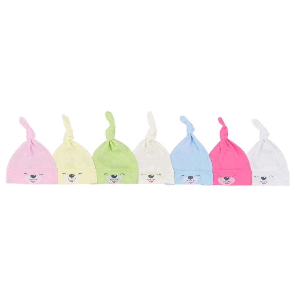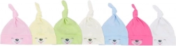 Den brede kant klemmer ikke om hovedet og holder huen sikkert på plads. Det legende print med smilende motiver og den stilfulde knude på toppen giver huen et muntert udtryk, der passer til det meste børnetøj.