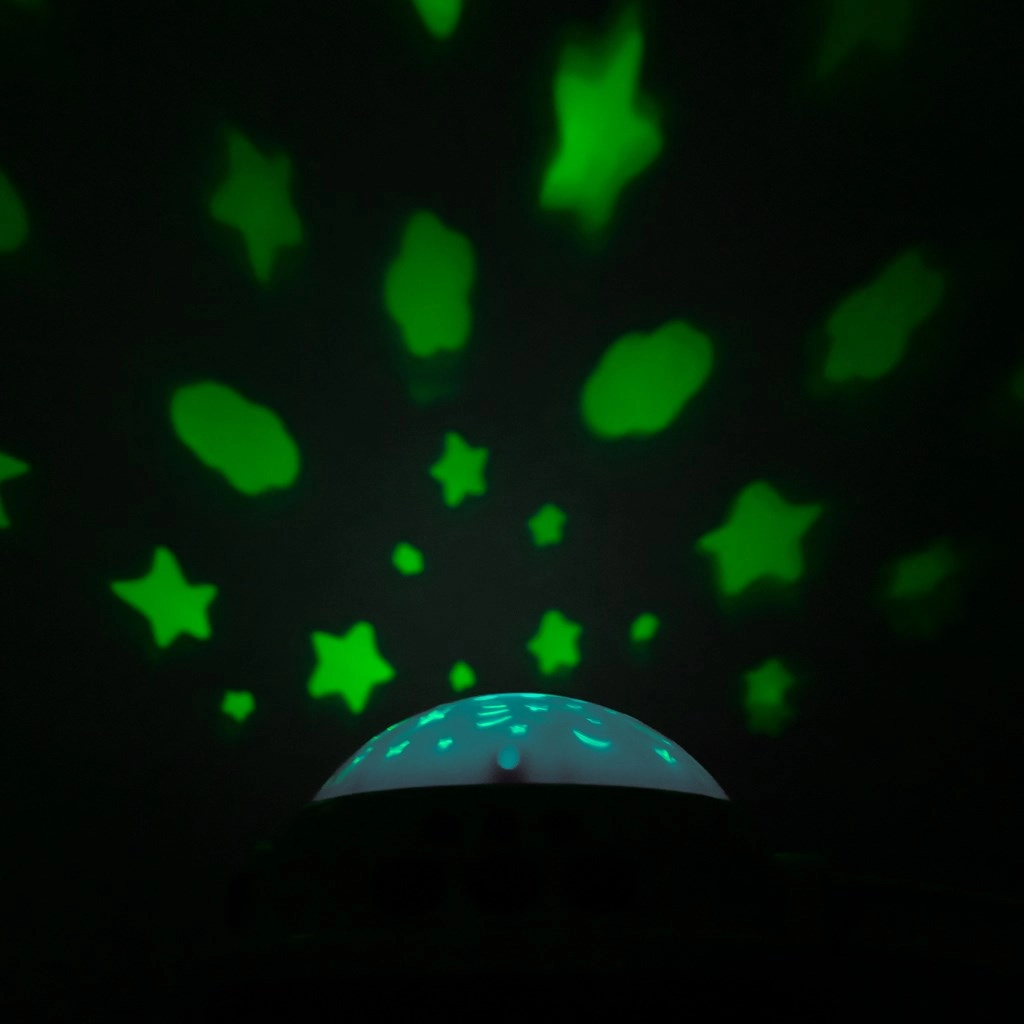 Projektoren projicerer farvede stjerner og kan bruges som natlampe. Den skaber en behagelig stemning, der beroliger babyen og forbereder den på søvn.