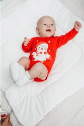 Dette bløde og komfortable body med lange ærmer imponerer med sin smukke røde farve og det hyggelige vintermotiv med en pingvin. De praktiske trykknapper på skulderen og mellem benene gør bleskift hurtigere og gør påklædningen lettere selv for de allermindste.