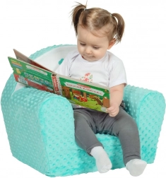 Denne mintfarvede lænestol i blød minky er designet til sikker og komfortabel siddestilling for små børn. Takket være den kvalitetsrige polyurethanskum er den let, stabil og nem at flytte selv med små børnehænder. Det aftagelige betræk i 100% polyester kan nemt vaskes, så stolen altid forbliver ren og frisk.