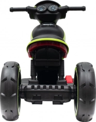 Kraften leveres af en duo af 6V/24W-motorer med træk på begge baghjul, drevet af et 6V/7Ah batteri. Motorcyklen imponerer med LED-belysning (blink for og bag), lydeffekter og mulighed for at afspille yndlingssange via USB/MP3. Forældre vil sætte pris på den høje kvalitet, nem vedligeholdelse og overskuelig opladning. For sikker kørsel anbefaler vi brug af beskyttelseshjelm.