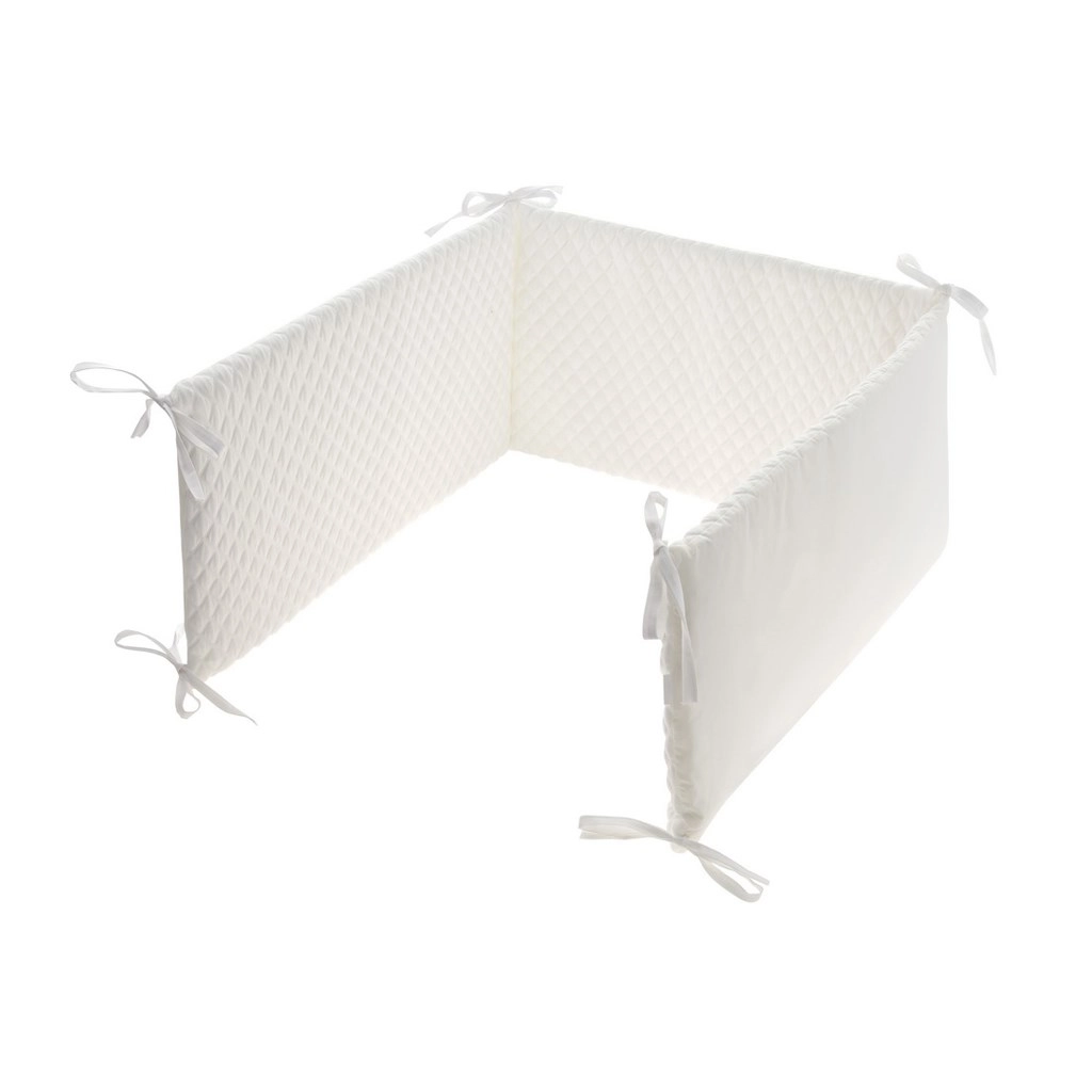 Den bløde sengekant på ca. 31 × 175 cm beskytter mod stød mod tremmerne og skaber et hyggeligt miljø for babyen.