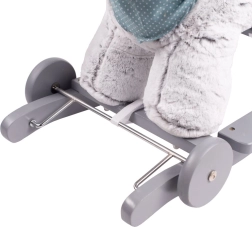 Med en enkel mekanisme skubber du hjulene ud og forvandler på et øjeblik gyngedyret til et kørende legetøj for ekstra sjov.