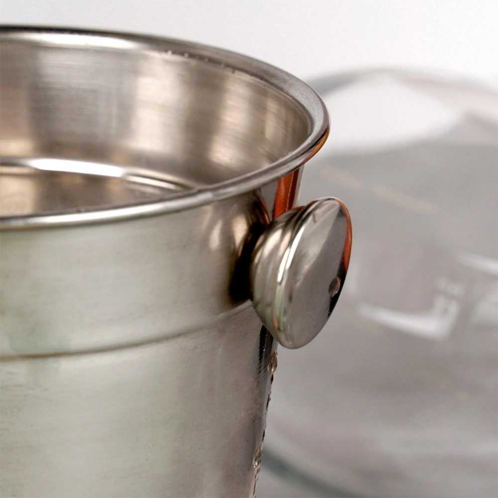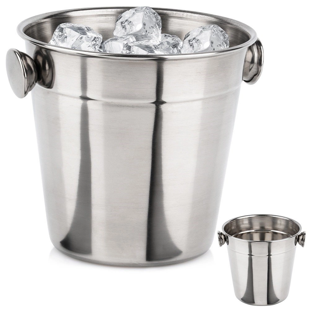 Den elegante isspand i kvalitets rustfrit stål er ideel til hjemmefester, smagninger og daglig brug. Takket være de kompakte mål 12,5 × 10,5 × 11 cm passer den nemt på bordet og rummer samtidig rigeligt med is til effektiv køling af drikkevarer.
