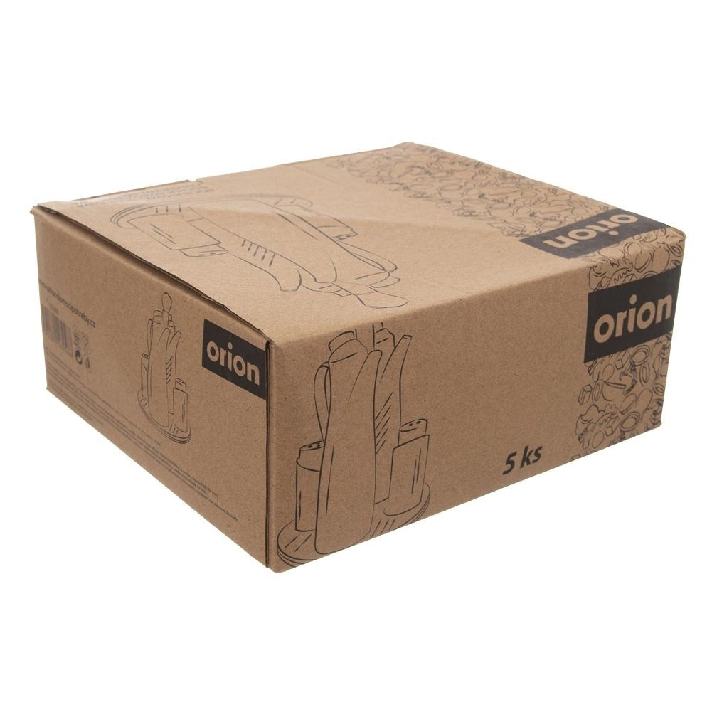 Sættet indeholder to 300 ml flasker til olie og eddike, en saltbøsse og en peberbøsse, alt sammen placeret på et kompakt drejeligt stativ med praktisk håndtag for nem transport. Det minimalistiske udtryk passer perfekt til både moderne og klassisk opdækning og muliggør elegant servering af krydderier.