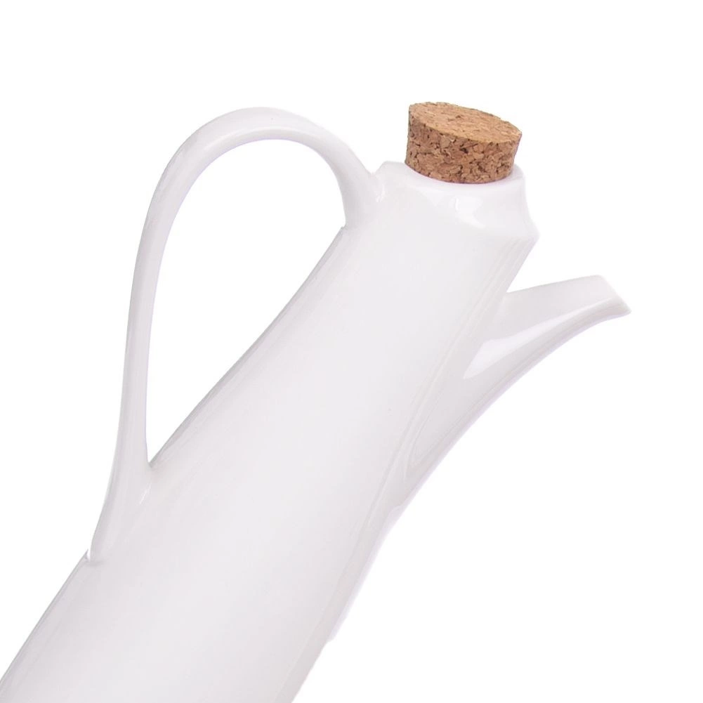 Dette 5-delte porcelænssæt er ideelt til daglig borddækning såvel som festlig servering. Det kombinerer et rent hvidt design med naturligt bambus og bringer orden og stil til dit køkken. Takket være korkpropperne forbliver dine olier og eddiker friske længere, og porcelænet kan trygt vaskes i opvaskemaskinen.