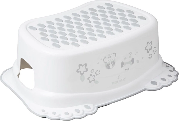 En sikker og komfortabel skammel hjælper børn til mere selvstændighed på badeværelset. Takket være den skridsikre overflade og den stabile konstruktion kan børn nemt og trygt nå håndvasken eller toilettet. Det neutrale hvide design med en glad ugle passer ind i ethvert badeværelse.