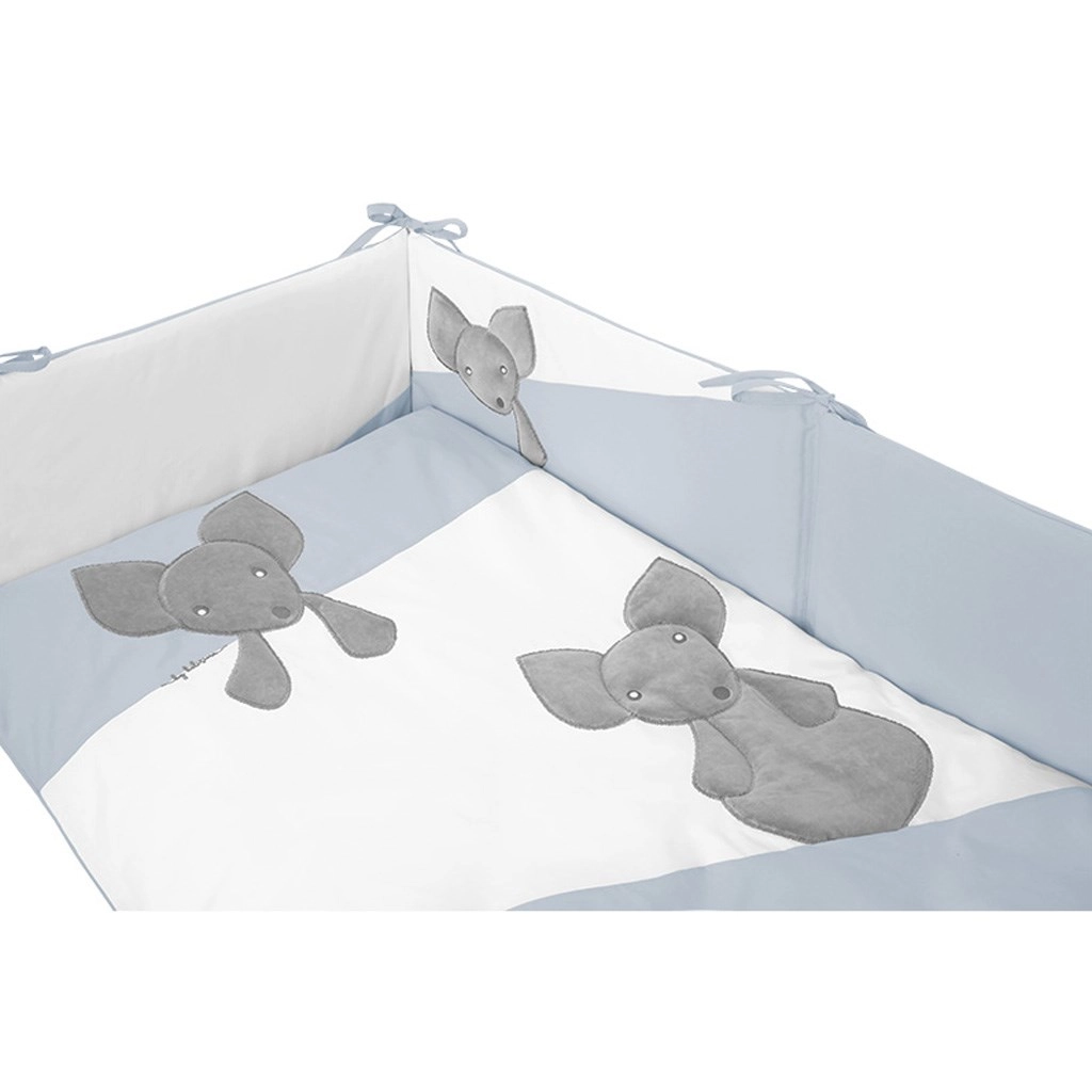 Sættet passer til standard tremmesenge og giver takket være omhyggelig syning dit barn et sikkert og behageligt sovemiljø.