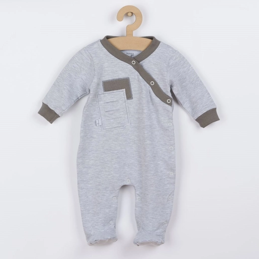 Det gennemtænkte snit holder babyens ryg varm, så heldragten passer både hjemme og på farten. Den neutrale grå farve er let at kombinere med resten af garderoben og ser moderne og enkel ud.