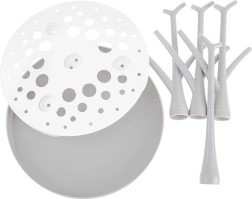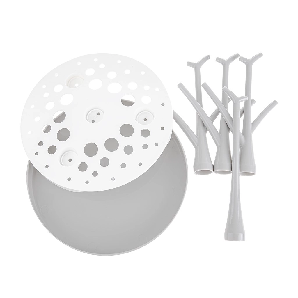 Forgrenede pinde holder flasker, sutter og tilbehør lodret, så vandet hurtigt løber af, og alt tørrer hurtigere.