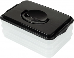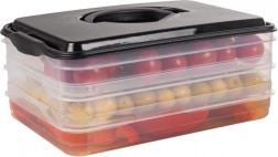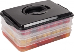 Takket være den tætte lukning forbliver maden frisk længere, og den overskuelige organisering sparer både tid og plads. Materialet er let og holdbart klart plast, som giver hurtig visuel kontrol af indholdet. Boksen kan vaskes i opvaskemaskine (ikke egnet til mikrobølgeovn).