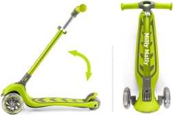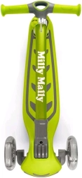 Løbehjulet Milly Mally Boogie er et fremragende valg til aktive børn, der elsker bevægelse. Styring via kropsvægt udvikler motorik og koordination, mens tre hjul (dobbelt baghjul) giver øget stabilitet og tryghed under kørsel. De forreste lysende hjul giver hver tur en ekstra portion sjov.