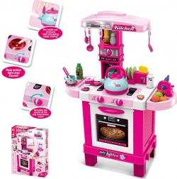Dette lyserøde BABY MIX legekøkken giver børn en autentisk madlavningsoplevelse. En kogeplade med lyseffekter og lyde, drejeknapper og en ovn der kan åbnes, stimulerer fantasien og udvikler finmotorikken. Takket være praktiske hylder, emhætte med kroge og en tallerkenholder har børnene alt lige ved hånden.