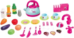 Der medfølger et rigt udvalg af tilbehør for endnu sjovere leg – fra service og bestik til madvarer som ketchup, mælk og grøntsager. Køkkenet er lavet af slidstærk plast og er ideelt til daglig leg derhjemme og i institutioner.