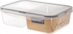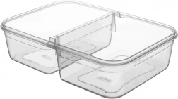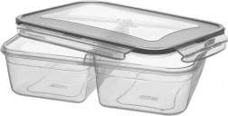 Praktisk delt madboks på 2 l med solidt låg, fire klips og silikonepakning for perfekt tæthed. Takket være to separate rum holder den smage og dufte adskilt, er BPA-fri, egnet til opvaskemaskine, mikrobølgeovn (uden låg), køleskab og fryser og tåler temperaturer fra -25 °C til +95 °C.