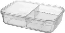 Praktisk og holdbar madboks på 1 l med inddelte indsatsbokse, lufttæt silikonepakning og fire kliklåse. Transparent udførsel for øjeblikkelig overblik over indholdet, uden BPA, egnet til opvaskemaskine, mikroovn (uden låg), køleskab og fryser. Ideel som lunchboks til arbejde, skole og på farten.