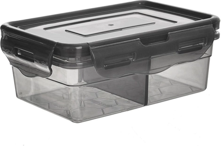 Hold maden frisk og pænt adskilt med den delte madkasse med tætsluttende låg. Det transparente mørkegrå materiale gør det muligt straks at se indholdet uden at åbne, mens den silikone tætningsindsats og 4 robuste klips sikrer pålidelig lukning og minimerer risikoen for lækage.