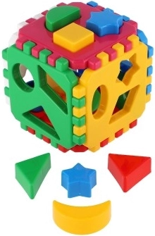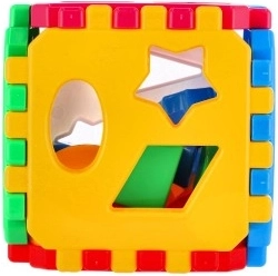 Den klassiske puttekube til de mindste udvikler finmotorik, logisk tænkning og genkendelse af former og farver. De farvede klodser sættes i de matchende huller, og kubens sider er forbundet med tandede kanter for nem samling. Ideel didaktisk legetøj til børn fra 12 måneder.