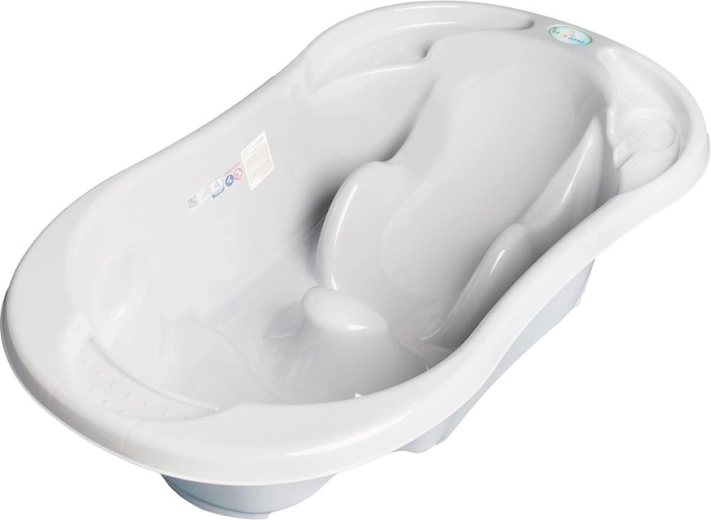 Babybadekarret Komfort 2-i-1 er designet til komfortabel og sikker badning fra fødslen og op til ca. 15 måneder. For de mindste tjener den anatomisk formede indvendige indsats, som stabiliserer liggestillingen, mens større børn vil sætte pris på den behagelige siddeplads. Badekarret har et praktisk afløb til hurtig tømning af vandet og nem vedligeholdelse takket være den glatte, sundhedsmæssigt ufarlige plast.