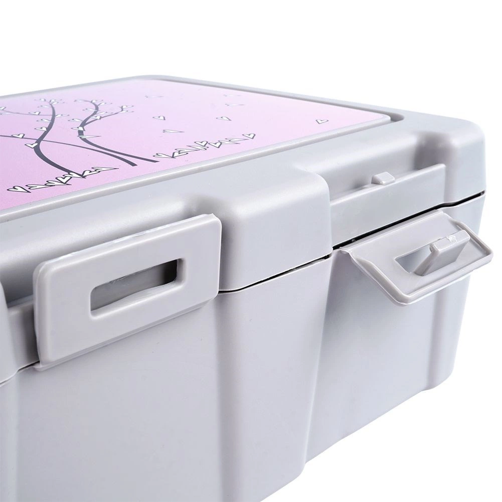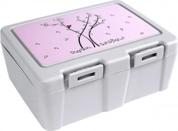 Boksen er lavet af kvalitetsplast egnet til fødevarer, i elegant grå med et dekorativt lyserødt panel med hjerter. Ideel til børn i skole og voksne på arbejde, udflugter eller rejser. For at bevare udseendet anbefales opvask i maskine ikke og den bør ikke bruges i mikrobølgeovn.