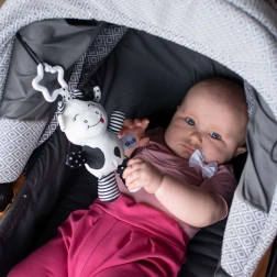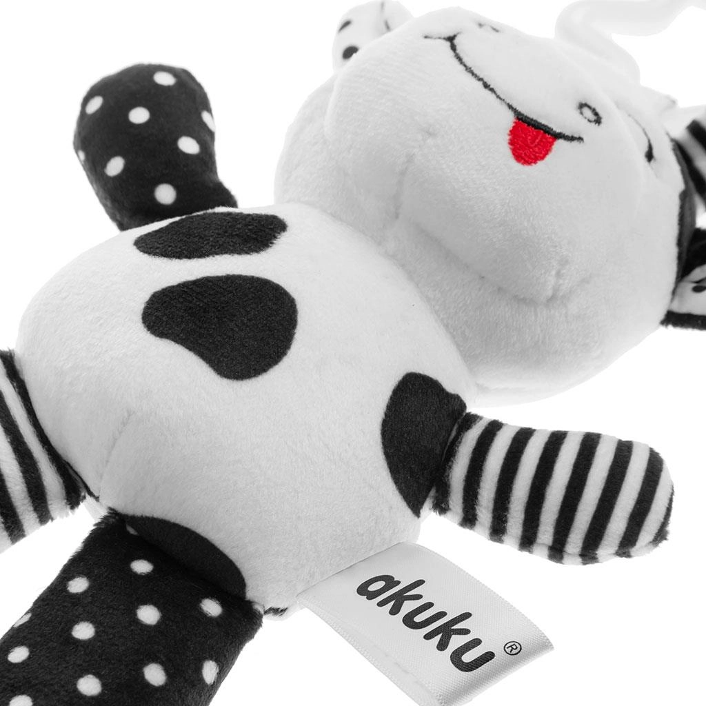 Denne sort/hvide plysko fra AKUKU er en fantastisk makker i de første måneder. Takket være kontrastfarverne fanger den nyfødtes opmærksomhed og styrker den visuelle opfattelse. Det integrerede raslelement afgiver en behagelig lyd, der stimulerer hørelsen og motiverer barnet til at gribe og udforske.