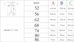 Det søde print giver heldragten et legende look, som du vil elske. Et fantastisk stykke til babyudstyret, der kombinerer komfort, praktisk design og stil.