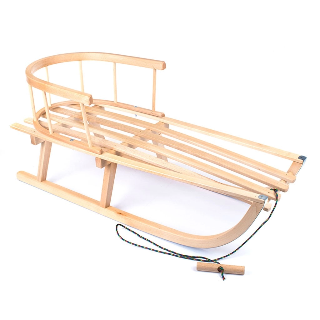 Nyd vinteren fuldt ud med en solid slæde af bøgetræ. Takket være den robuste udførelse, metalforstærkede meder og forhøjet ryglæn er den velegnet til børn, der sætter pris på både tryghed og komfort. Den naturlige, farveløse lak er sundhedsmæssigt ufarlig og fremhæver træets åretegning.