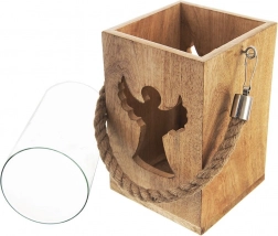 Giv både inde- og uderum en varm atmosfære. Trælanternen med engleudskæring er velegnet til klassiske lys og fyrfadslys. Den store glascylinder beskytter flammen og øger sikkerheden under brug.