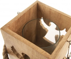 Takket være det robuste rebhåndtag kan lanternen nemt bæres eller hænges på en krog. Glasinserten tages let ud, så tænding af lyset er hurtigt og bekvemt. Det naturlige trælook passer i stuen, soveværelset, entréen samt på altan, terrasse eller i haven.