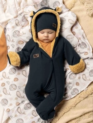 Den vinterlige spædbørnsheldragt Nicol Miki i grafitfarve er et ideelt valg til efterår og vinter. Det superbløde for af Wellsoft holder babyen varm, mens det elastiske yderstof med en andel elastan sikrer bekvem bevægelse. Hætten med ører giver et nuttet look, og takket være side-lynlåsen er heldragten meget nem at tage af og på.
