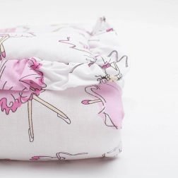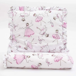 Dette bomuldssæt til barnevogn New Baby Ballerina Bella kombinerer et nænsomt udtryk med praktisk anvendelse og sikkerhed for din baby. Puden og dynen med en fin flæse er syet af højkvalitets 100% bomuld, som er skånsom mod sart børnehud. Fyldet består af 100% antiallergiske fibre, som hæmmer vækst af mikroorganismer og skimmel.